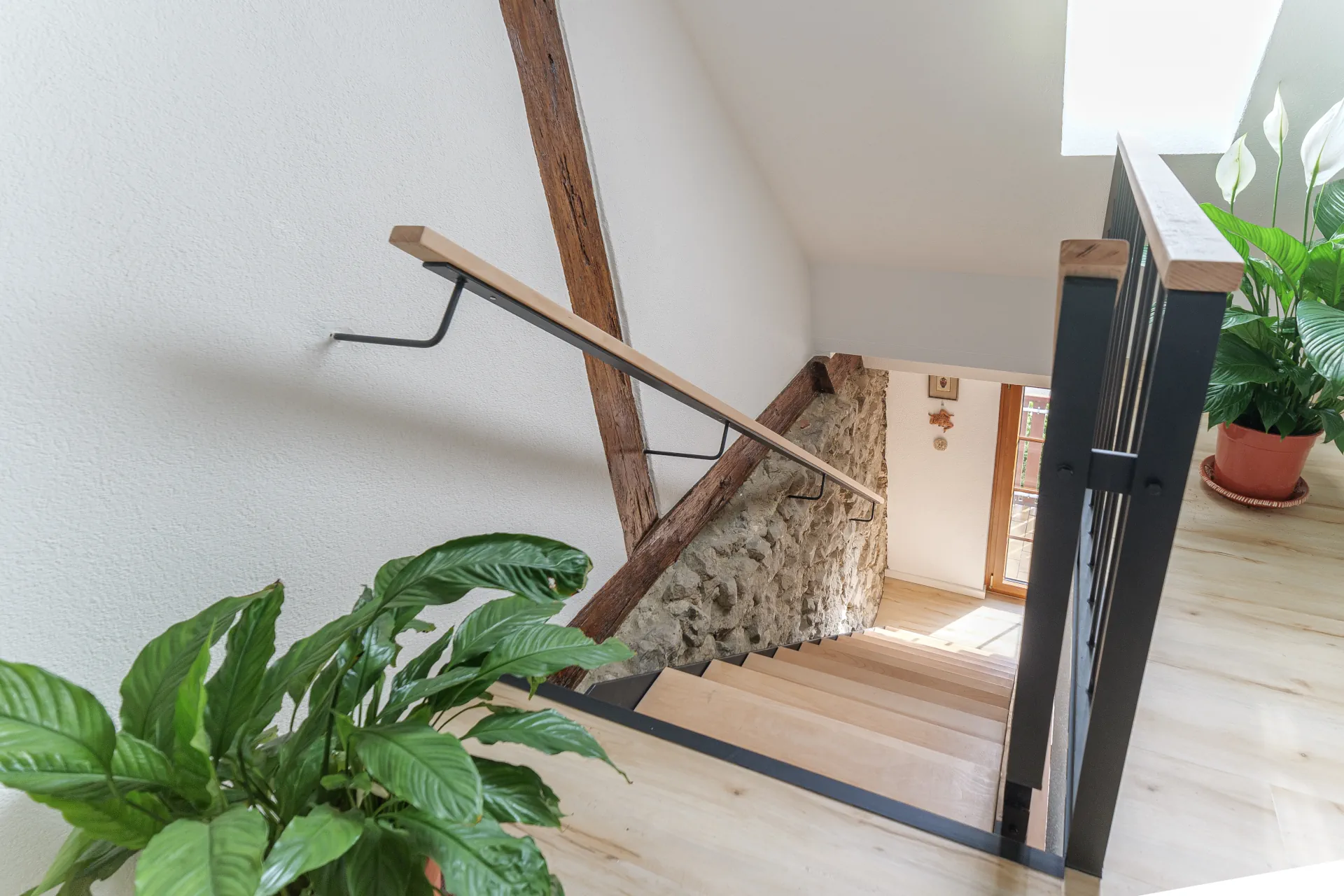 Das erhaltene, freigelegte Fachwerk trägt zum Erhalt des ursprünglichen Charakter des Hauses bei.